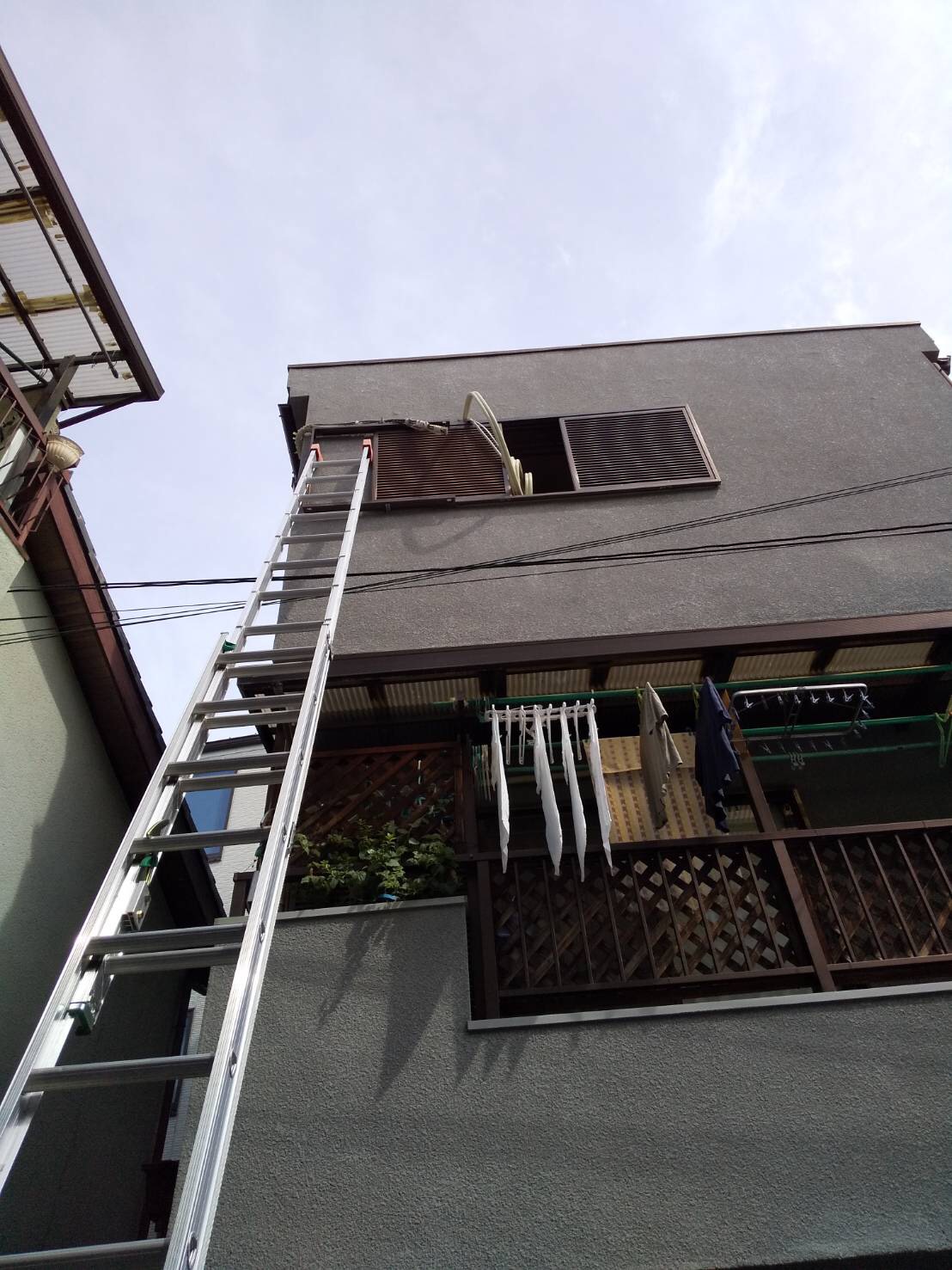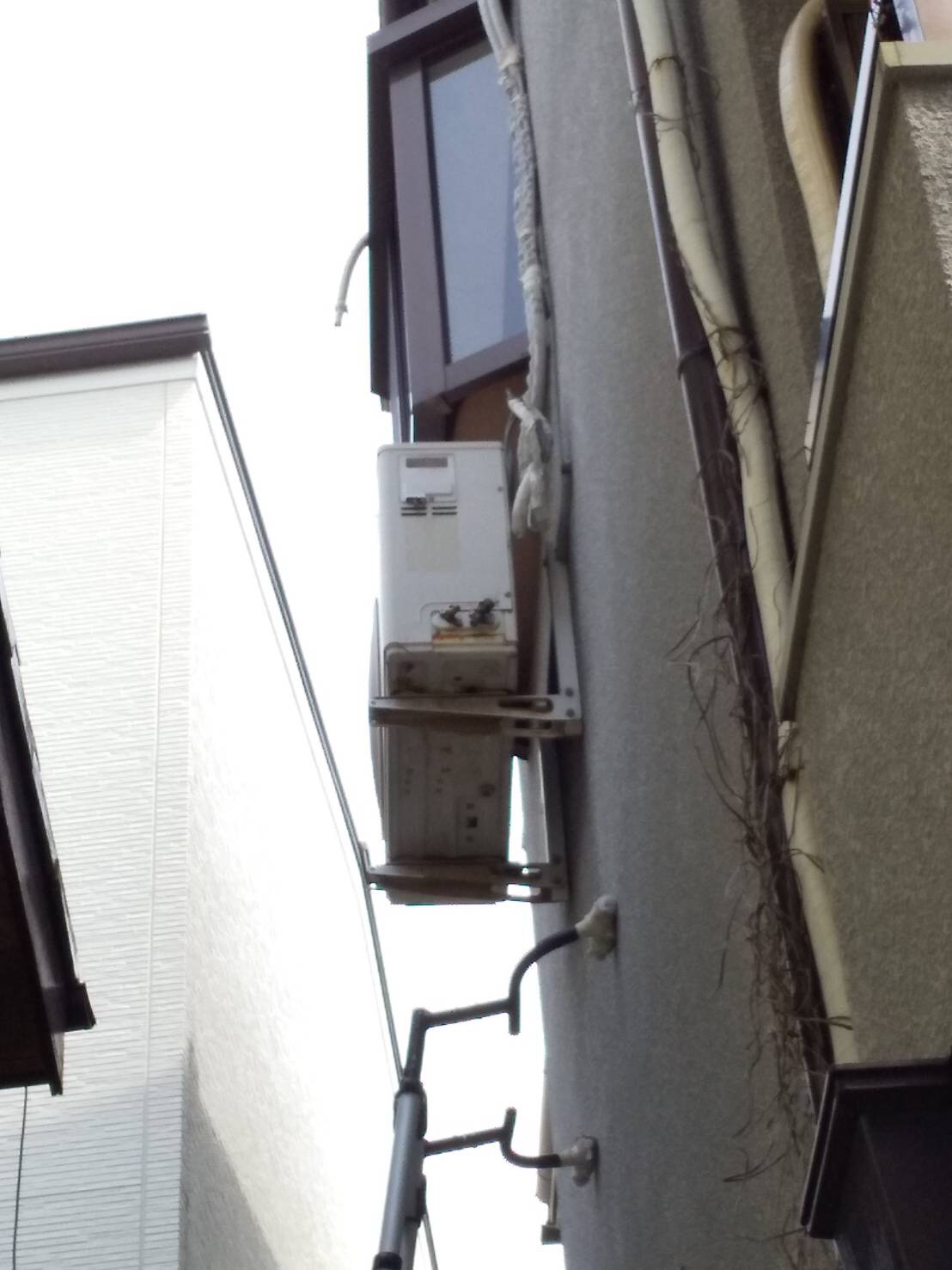 外壁の高所に設置されており、取り外しが難しい現場でした。
