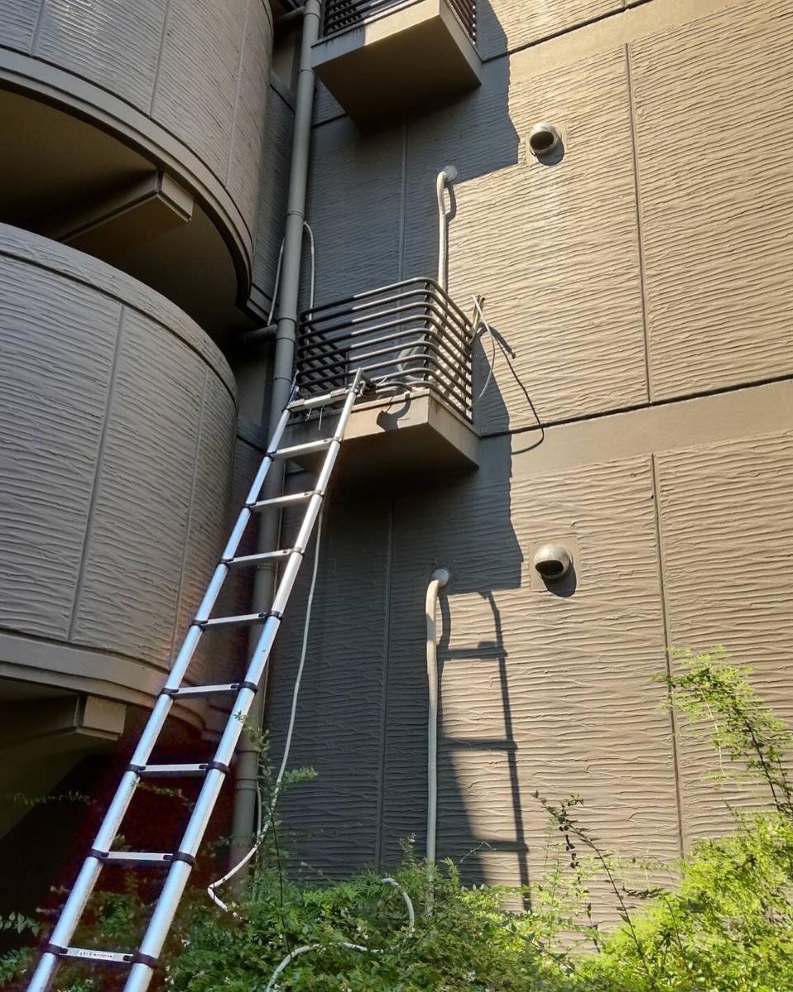 室外機を担ぎながら梯子を上がるので技術と体力のいる仕事です💦